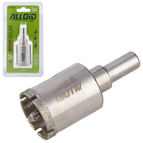Свердло корончате алмазне по склу та кераміці 28мм з центрувальним свердлом Alloid