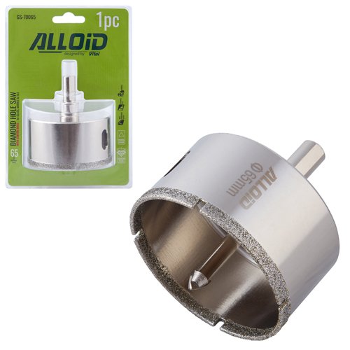 Свердло корончате алмазне по склу та кераміці 65мм з центрувальним свердлом Alloid