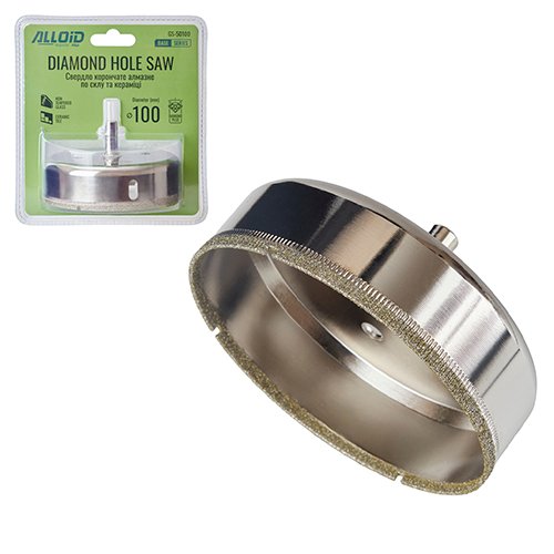 Свердло корончате алмазне по склу та кераміці 100мм з центрувальним свердлом Alloid