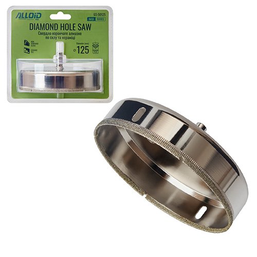 Свердло корончате алмазне по склу та кераміці 125мм з центрувальним свердлом Alloid