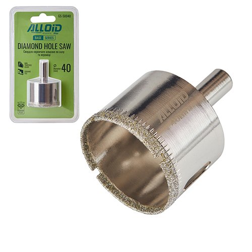 Свердло корончате алмазне по склу та кераміці 22мм з центрувальним свердлом Alloid