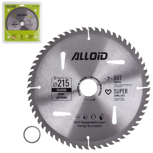 Диск пиляльний по дереву з твердосплавними напайками 215х30/25,4мм, 60 зубів Alloid
