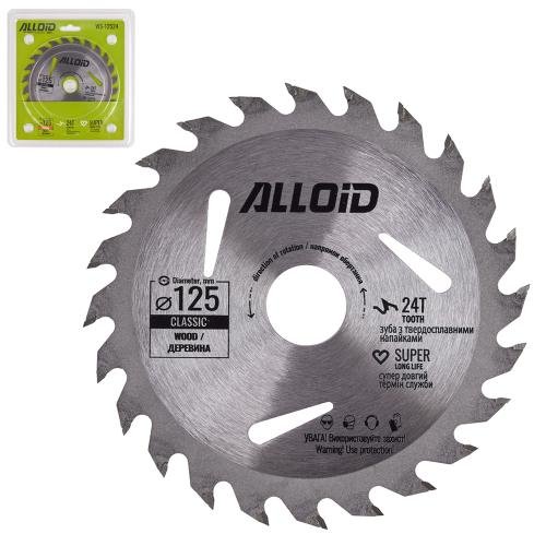 Диск пиляльний по дереву з твердосплавними напайками 125х22,2мм, 24 зуби Alloid