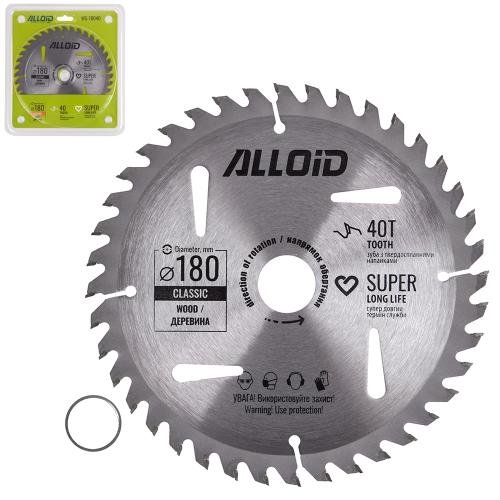 Диск пиляльний по дереву з твердосплавними напайками 180х25,4/22,2мм, 40 зубів Alloid