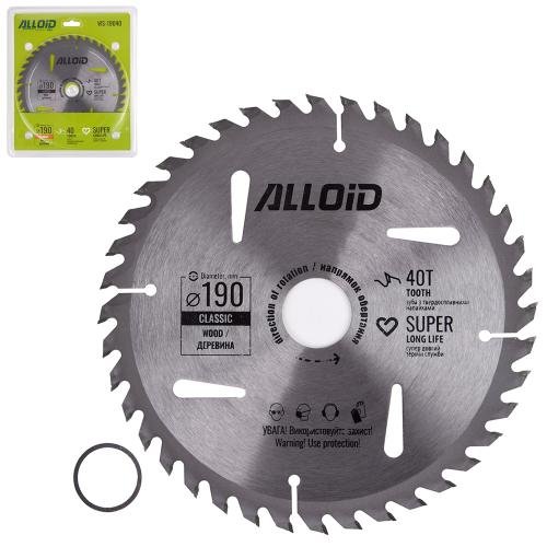 Диск пиляльний по дереву з твердосплавними напайками 190х30/25,4мм, 40 зубів Alloid