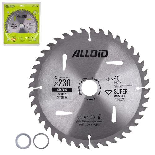 Диск пиляльний по дереву з твердосплавними напайками 230х30/25,4/22,2мм, 40 зубів Alloid