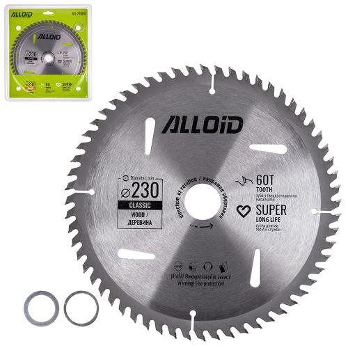 Диск пиляльний по дереву з твердосплавними напайками 230х30/25,4/22,2мм, 60 зубів Alloid