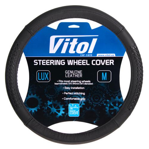 Чохол/оплетка на кермо VLOD-SF030-1 M чорна/що обшивається/шкіра/1 шов
