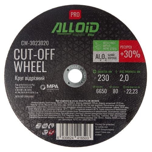Відрізний круг Alloid Pro 41 14А, Ø230×2,0×22,23 мм — потужне рішення для глибокого різання металу, труб і профілю у великому форматі:
