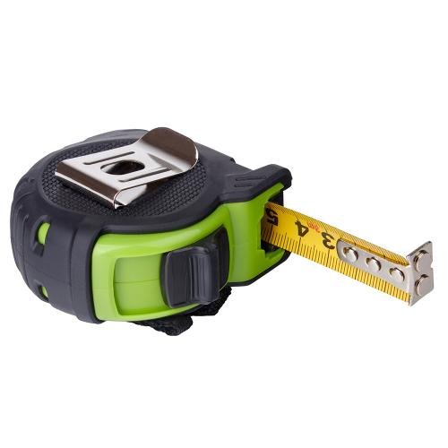 Рулетка Alloid Pro з фіксатором і магнітом — це надійний, ергономічний вимірювальний інструмент, створений для професійного та побутового використання. Оснащена потужним фіксатором та вбудованими магнітами на кінці стрічки, які дозволяють фіксувати її на металевих поверхнях. Це значно полегшує вимірювання однією рукою — особливо у великих приміщеннях чи на висоті.