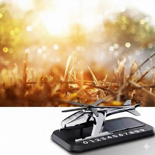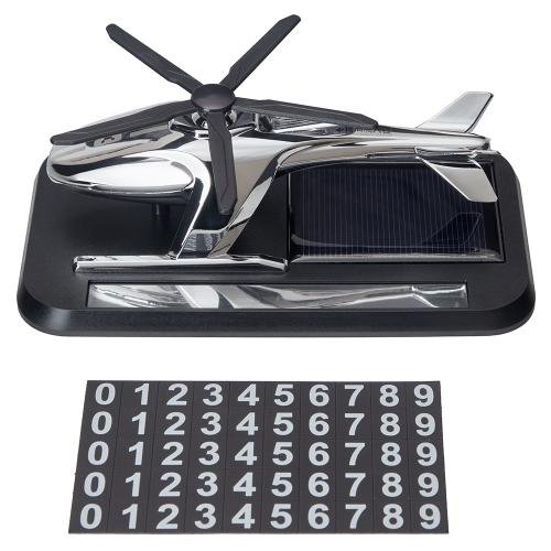 Багаторазовий ароматизатор «Гелікоптер» на сонячній батареї з вказівником номера телефона (GZKT-34) — оригінальний автомобільний аксесуар, який поєднує ароматизацію салону, декоративний ефект та практичну функцію тимчасового відображення контактного номера. Завдяки вбудованій сонячній батареї пропелер гелікоптера автоматично обертається під дією світла, створюючи динамічний візуальний ефект без використання батарейок.