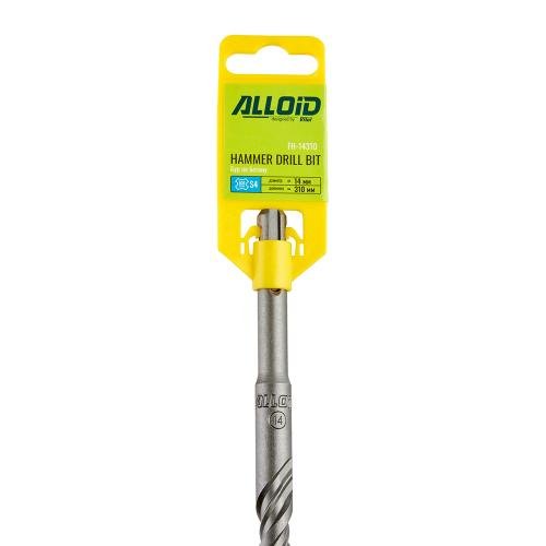 Бур для бетону Alloid 14×310мм використовується в перфораторах з типом кріплення SDS-plus для свердління отворів в бетоні, цегляній кладці, камені, граніті.
