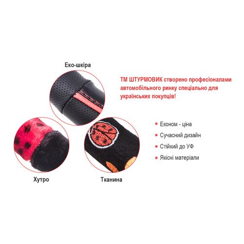 Чохол на руль від бренду Штурмовик відрізняється перфорованим матеріалом, який запобігає ковзанню і зберігає долоні сухими завдяки правильній циркуляції повітря.
