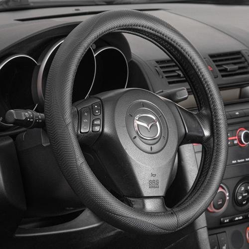 Чохол на руль виготовлений з нековзкого перфорованого матеріалу, який дозволяє вільно циркулювати повітрю і виходити волозі, зберігаючи долоні сухими і створюючи комфорт водієві під час руху за кермом.