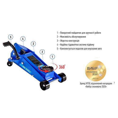 Домкрат гідравлічний підкатний Vitol DP-35038 3,5 т, 145–500 мм