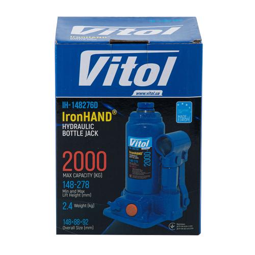 Vitol Iron HAND – це обмежена лінійка домкратів, виділена в окремий бренд та об'єднана однією загальною рисою – вигідна ціна при збереженні високої якості. Придбавши телескопічний гідравлічний домкрат IH-148276D, ви будете готові до будь-яких викликів, які може кинути вам автомобільне життя.