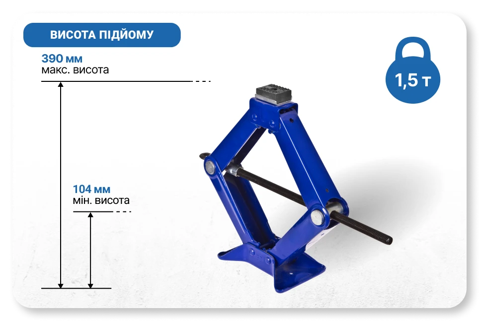 • Низький підхват 104 мм: підходить для автомобілів із заниженою підвіскою, де звичайний домкрат може не підлізти.