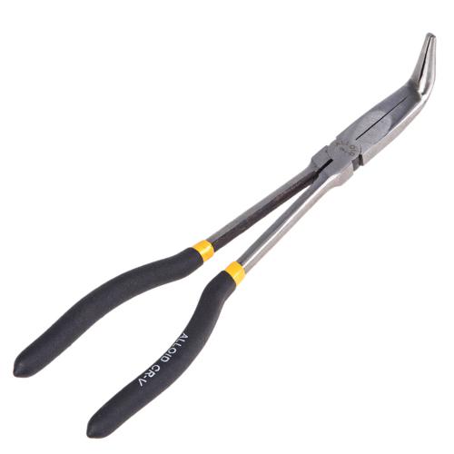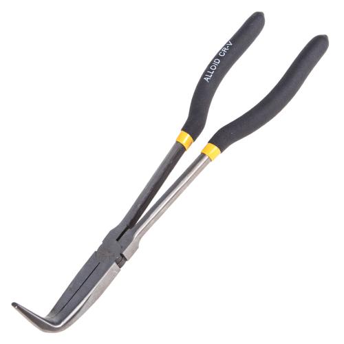 Довгогубці загнуті Alloid довжиною 11 дюймів з кутом згину 90° – незамінний інструмент для проведення слюсарних, ремонтних та автомобільних робіт. Завдяки зручній формі та загнутій робочій частині забезпечується комфортний доступ до важкодоступних місць, дозволяючи акуратно й ефективно виконувати найскладніші операції.