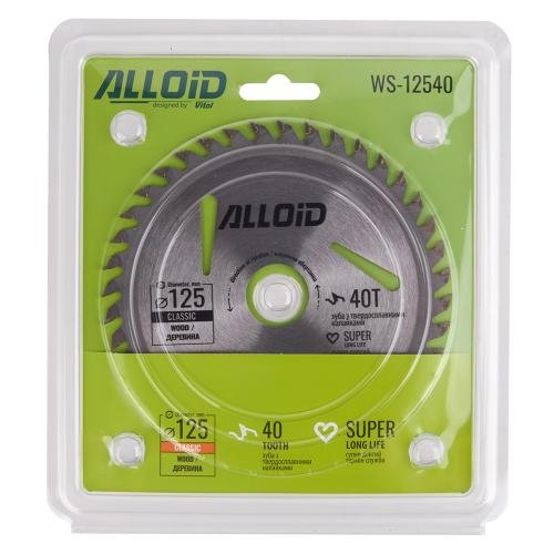 Пиляльний диск Alloid WS-12524 (125 мм, 40 зубців) призначений для швидкого та точного різу деревини, ДСП, фанери та МДФ. Твердосплавні напайки забезпечують довгий термін служби, чисту лінію різу без сколів і максимальну ефективність навіть при інтенсивному використанні.