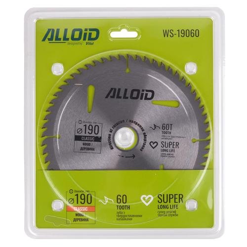 Alloid 190×30/25,4 мм, 60 зубів — професійний диск для чистого та ефективного різу деревини, фанери, ДСП і МДФ. Завдяки оптимальній кількості зубів та надійним твердосплавним напайкам диск забезпечує продуктивну та акуратну роботу без сколів.