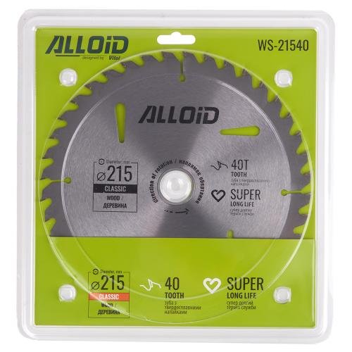 Alloid 215×30/25,4 мм, 40 зубів — професійний пиляльний диск для точного та швидкого різу деревини, фанери, ДСП, МДФ. Оптимально підходить для роботи з ручними циркулярними пилами, торцювальними та форматно-розкрійними верстатами. Завдяки твердосплавним зубцям забезпечує якісну лінію різу без сколів.