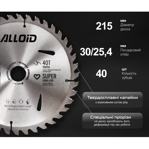 Пиляльний диск Alloid сумісний з циркулярними, торцювальними та ручними електропилами.