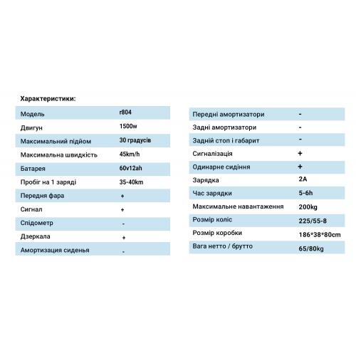 - Акумулятор: 60 V, 12 Ah