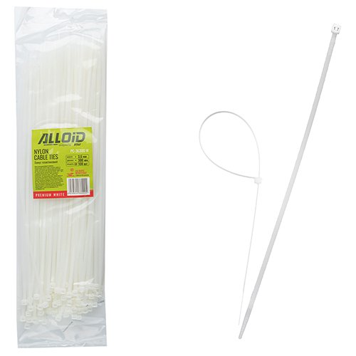 Хомут пластиковий Alloid 4.8 х 200 мм, 100 шт./уп., білий – це універсальний та надійний інструмент для фіксації та стягування кабелів, проводів, труб та інших елементів.