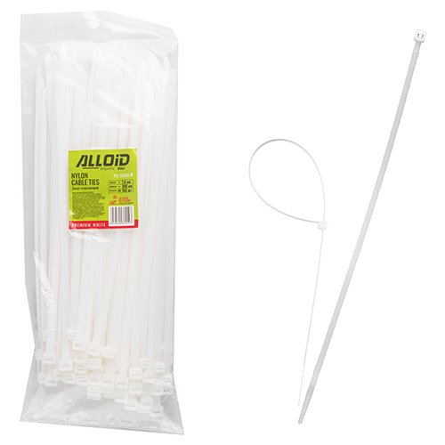 Хомут пластиковий Alloid 7.6 х 300 мм, 100 шт./уп., білий – це міцний та надійний інструмент для фіксації та стягування кабелів, проводів, труб та інших елементів.