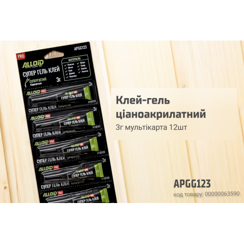 Клей-гель ціаноакрилатний 3г ALLOID PRO мультікарта 12шт APGG123