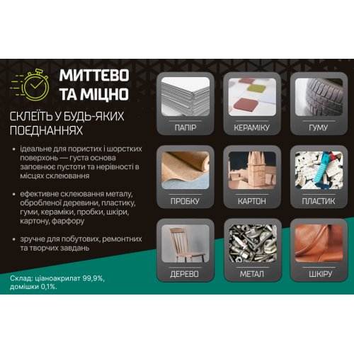 Супергуста текстура забезпечує точність і чистоту в роботі, не розтікається та гарантує міцне з’єднання.