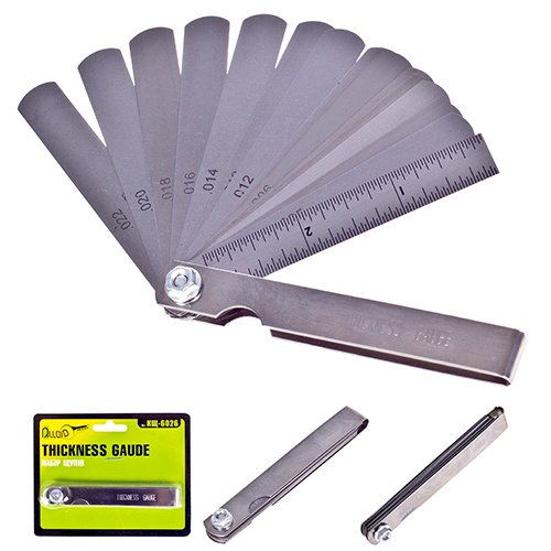 Набір складається з 15 щупів з діапазоном вимірювання від 0,05 до 0,63 мм. Кожна пелюстка виготовлена з полірованої загартованої листової сталі, має чітке маркування товщини та забезпечує точні й стабільні результати вимірювань.