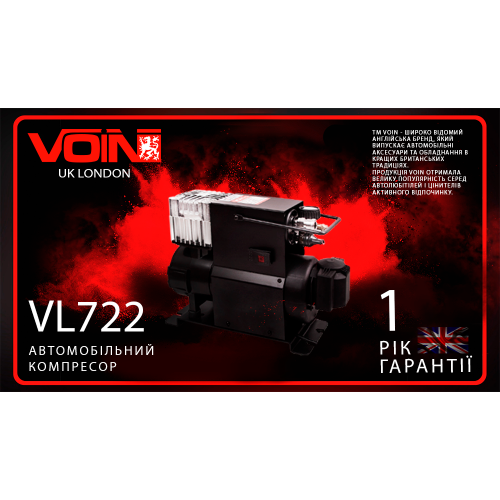 Професійний автомобільний компресор VOIN VL-722 OFF ROAD MASTER, 12 В, 230 л/хв, 90 PSI, з ресивером 0,5 л