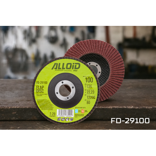 Пелюстковий шліфувальний диск Alloid FD-29100 T29 Ø125 мм, зерно 100 — це надійний інструмент для м’якої та точної фінішної обробки металу, деревини, лакофарбових покриттів, пластику та нержавійки. Ідеальний вибір для делікатного шліфування без ризику пошкодити поверхню.