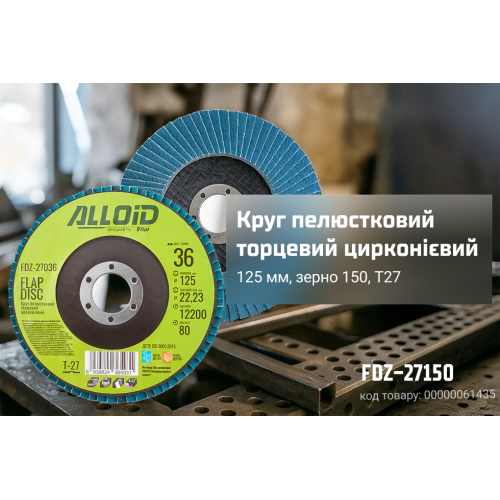 Пелюстковий торцевий цирконієвий круг Alloid FDZ-27150 (Ø125 мм, P150, T27) — інструмент для найточнішої та найделікатнішої обробки поверхонь.