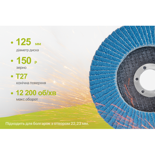 Будьте першим, хто залишив відгук на “Круг пелюстковий торцевий цирконієвий 125 мм, зерно 150 Alloid, T27”