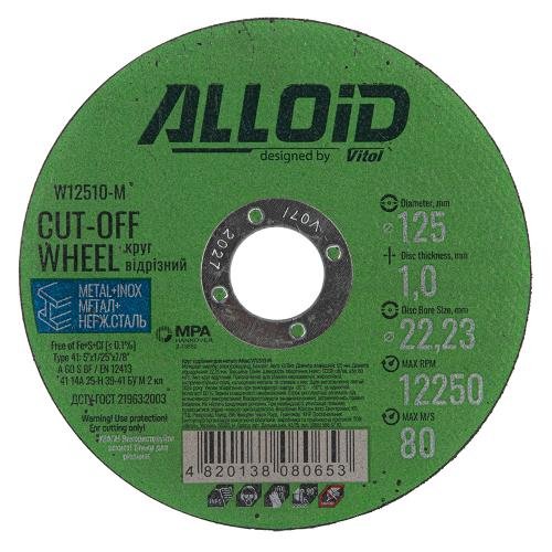 Круг відрізний Alloid W12510-M призначений для різки металу різних типів твердості, нержавіючої та легованої сталі тощо.