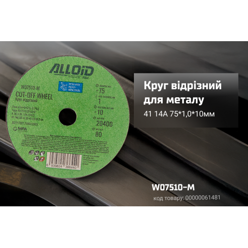 Відрізний круг Alloid W07510-M діаметром 75 мм і товщиною 1,0 мм створений для високоточного різання металу та нержавіючої сталі у важкодоступних місцях.