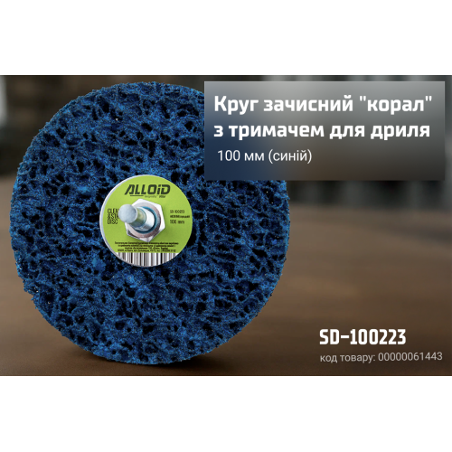 Зачисний круг “Коралл” Alloid SD-100223 (100 мм, синій, середня жорсткість) — універсальний інструмент для ефективного очищення металу, деревини та інших матеріалів.