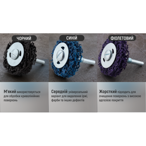 • Фіолетовий (жорсткий) — для очищення покриттів з високою адгезією.