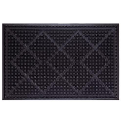 Килимок гумовий INTERPLAST «Вавилон» — класичний брудозахисний килимок прямокутної форми розміром 40×60 см із рельєфним геометричним орнаментом на поверхні. Виготовлений із натуральної та синтетичної гуми (вторинної переробки) українського виробництва, він поєднує практичність, міцність і доступність. Підходить як для вхідних зон усередині приміщень, так і для зовнішнього використання на вулиці, терасі або в гаражі.