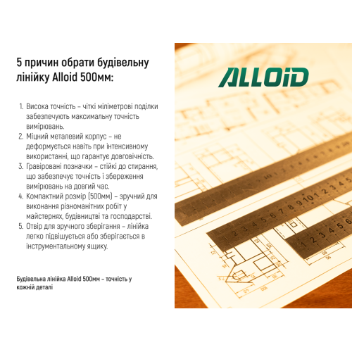 Будівельна лінійка Alloid 500 мм — точність і надійність для вашої роботи