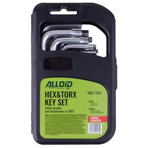 Alloid HEX&TORX Key Set 18 шт — це універсальний набір кутових шестигранних (HEX) та зіркоподібних (TORX) ключів, призначений для професійного та побутового використання. Ідеально підходить для обслуговування велосипедів, техніки, авто, меблів та електроніки.