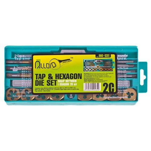 Набір Alloid НМП-0391 відноситься до металорізальних інструментів, використовується для відновного ремонту різьблення або нарізування різьбового з'єднання в більшості матеріалів. Набір дозволяє вручну нарізати як внутрішнє, так і зовнішнє різьблення. Завдяки великій кількості елементів, набір дуже універсальний.