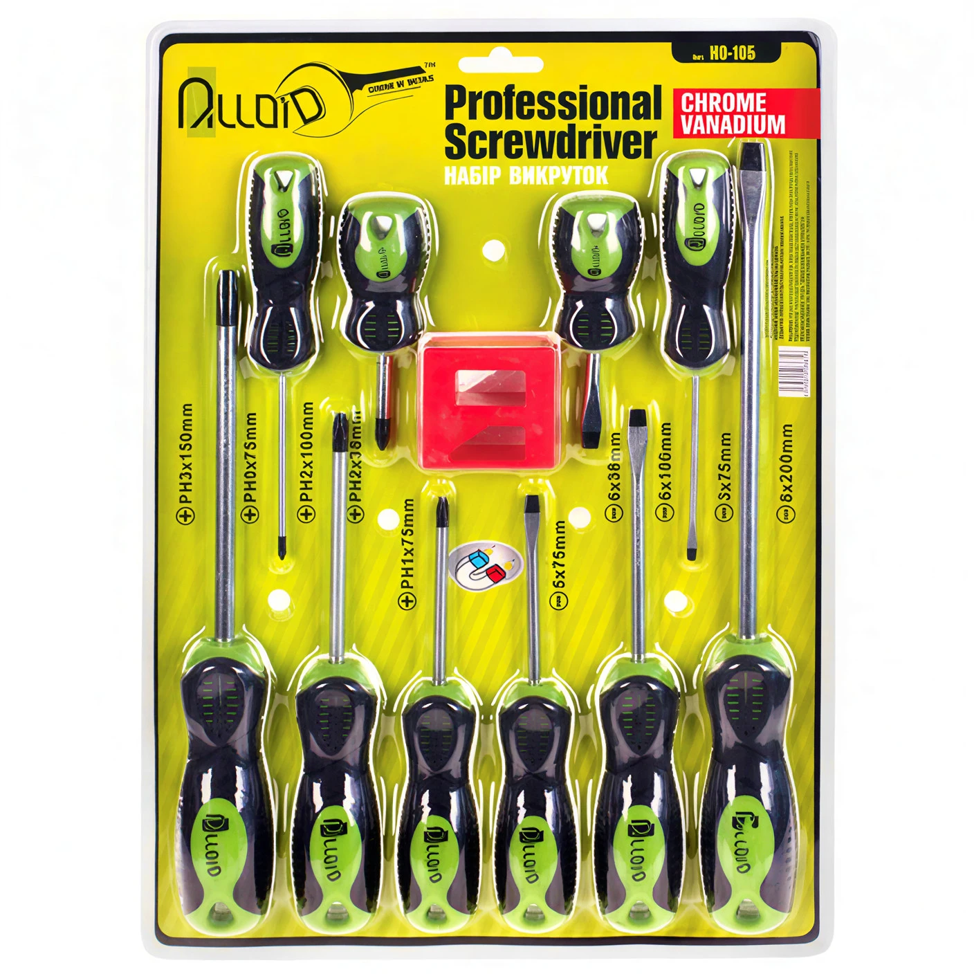 Набір викруток Alloid — комплект із 10 інструментів двох типів: шліцевих (SL) та хрестоподібних (PH), розроблений для монтажних і ремонтних завдань різного рівня складності.