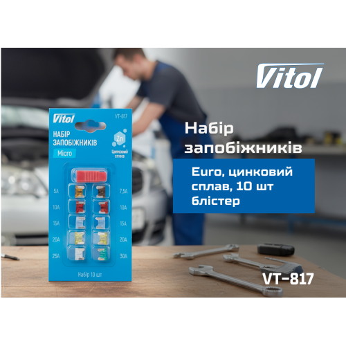 Набір автомобільних запобіжників VITOL Micro використовується для захисту електропроводки та обладнання від перевантаження і короткого замикання. У разі перевищення допустимого струму запобіжник перегорає, розриваючи ланцюг і запобігаючи пошкодженню електронних компонентів. Це особливо актуально для систем освітлення, сигналізації, панелі приладів та додаткового обладнання. Формат Micro часто застосовується в нових моделях транспорту та мототехніці.