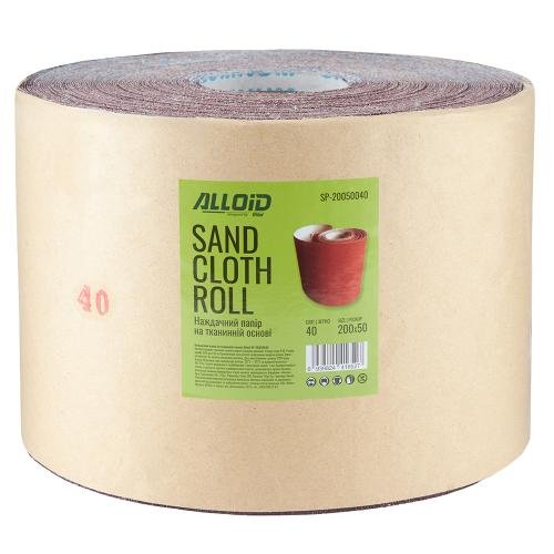 Наждачний папір Alloid P40 (200 мм × 50 м, тканинна основа) — ідеальне рішення для грубої зачистки дерева, металу, пластику та старих покриттів.