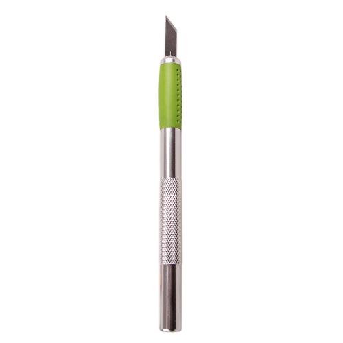 Ніж-скальпель Alloid НА-1825 — це точний ріжучий інструмент для акуратної роботи з папером, картоном, пластиком, гумою та іншими матеріалами. Металевий корпус забезпечує міцність конструкції та стабільність під час різання, а змінні леза зі сталі SK5 відзначаються високою твердістю та тривалим збереженням гостроти. Модель підходить як для професійного використання, так і для домашніх майстрів.