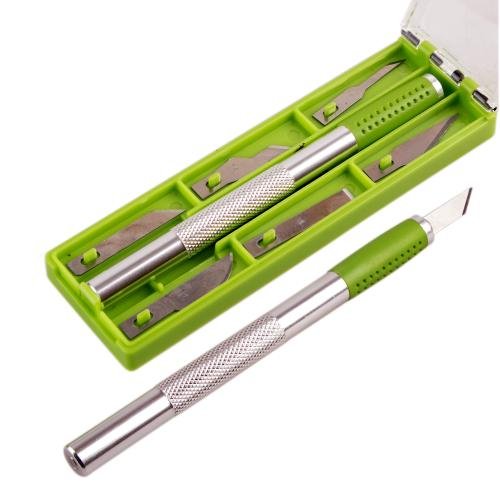 - 6 змінних лез у комплекті — розширюють можливості використання для різних типів завдань.
