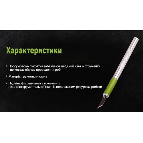 Ніж-скальпель Alloid НА-1825 використовується для точного вирізання дрібних елементів, макетних робіт, моделювання та канцелярських завдань. Завдяки гострому тонкому лезу інструмент дозволяє виконувати акуратні різи без рваних країв. Він стане у пригоді під час створення масштабних моделей, різання шаблонів, обробки тонкого пластику або гуми.